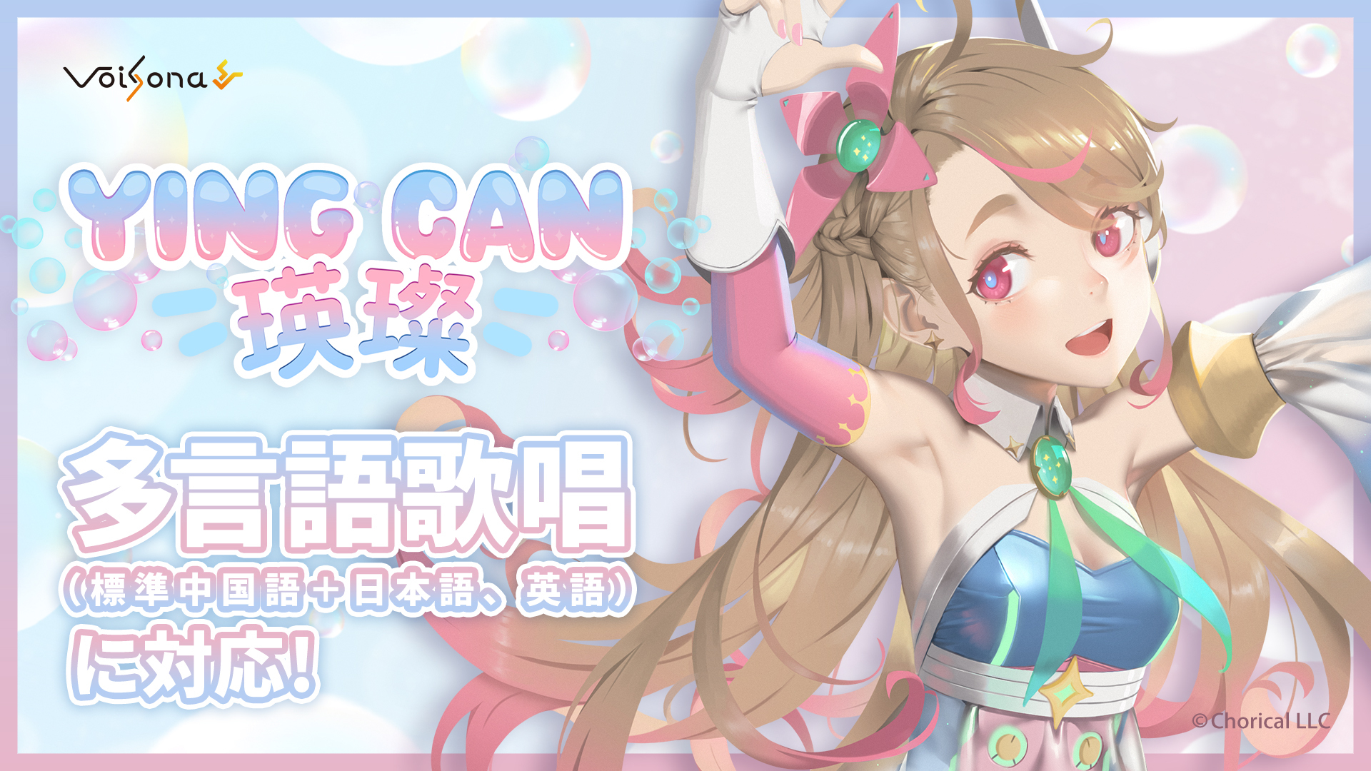 標準中国語ソングボイスライブラリとして発売中の「VoiSona 瑛璨(Ying Can)」が、日本語および英語の歌唱にも対応しました。1トラックで標準中国語・日本語・英語の混在した歌唱に対応が可能です。本日公開されたボイスライブラリver. 2.2.0から使えるようになります。